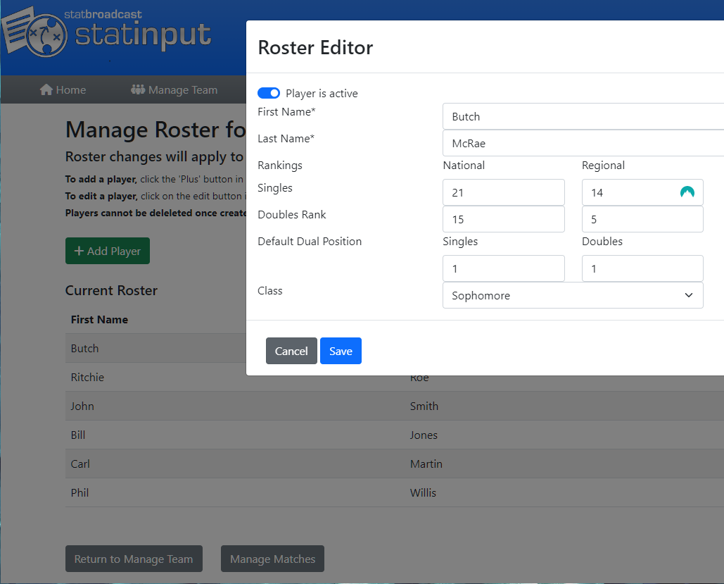 StatInput also allows for multiple devices to access the same event, so you can have multiple people updating your matches at once, or have one person live scoring and another person entering corrections.